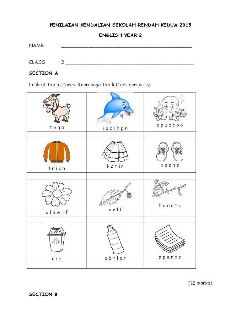 Doc Soalan Bahasa Inggeris Tahun 1 Ujian 1 Bulan Mac Revathi Reva Academia Edu